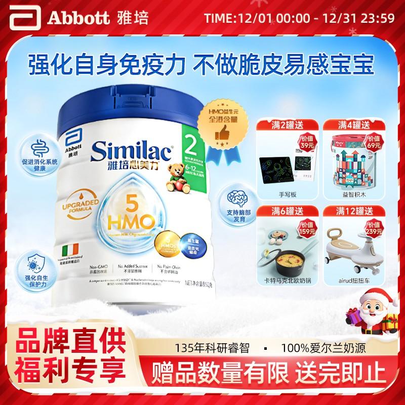 【超值满赠】品牌直供-雅培similac港版心美力5HMO婴幼儿奶粉2段 850g